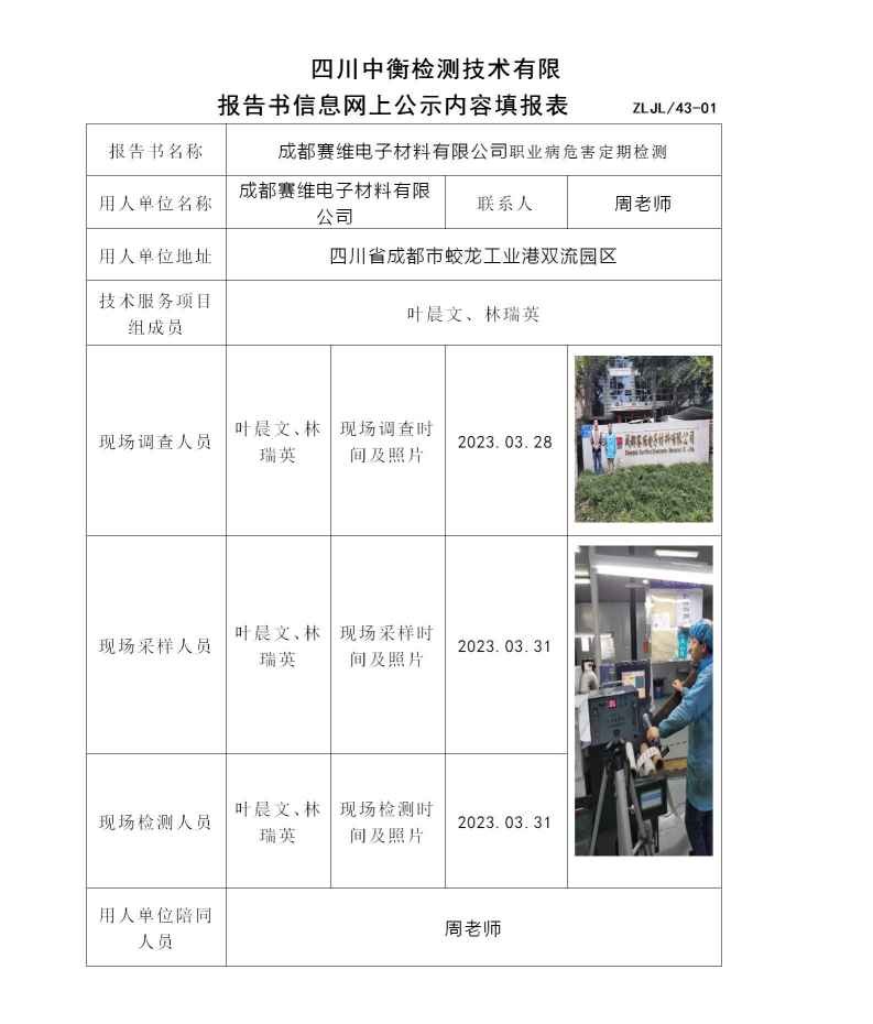 成都賽維電子材料有限公司職業(yè)病危害定期檢測