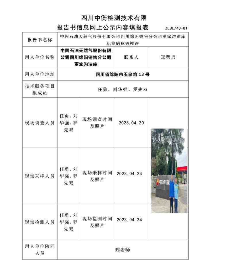 中國石油天然氣股份有限公司四川綿陽銷售分公司董家溝油庫職業(yè)病危害定期檢測