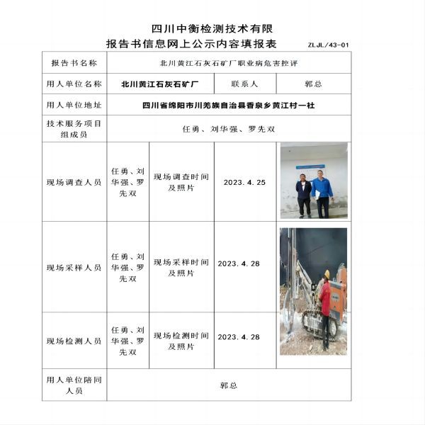 北川黃江石灰石礦廠職業(yè)病危害定期檢測