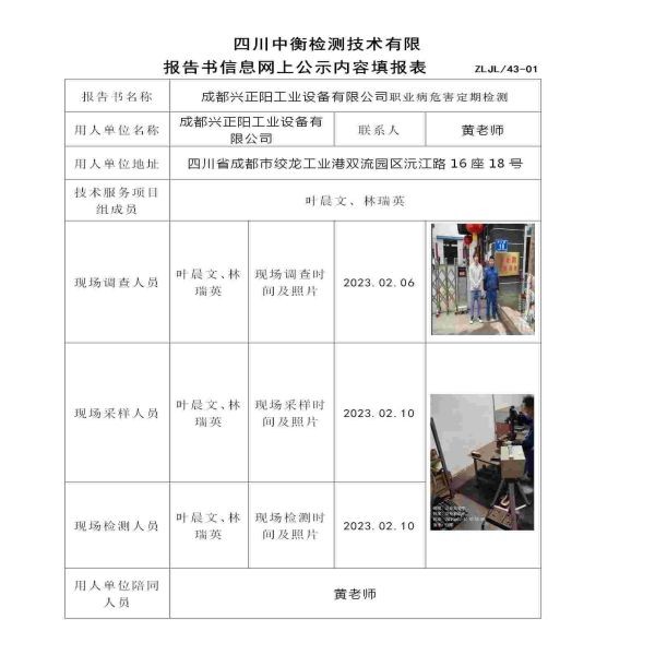 成都興正陽工業(yè)設備有限公司職業(yè)病危害定期檢測