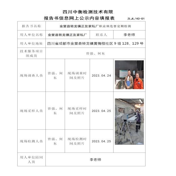 金堂縣轉(zhuǎn)龍鎮(zhèn)正友家私廠職業(yè)病危害定期檢測(cè)