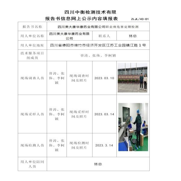 四川美大康華康藥業(yè)有限公司職業(yè)病危害定期檢測