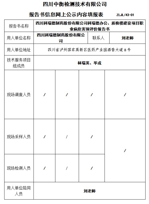 四川科瑞德制藥股份有限公司科瑞德辦公、質(zhì)檢樓建設(shè)項(xiàng)目預(yù)評(píng)價(jià)