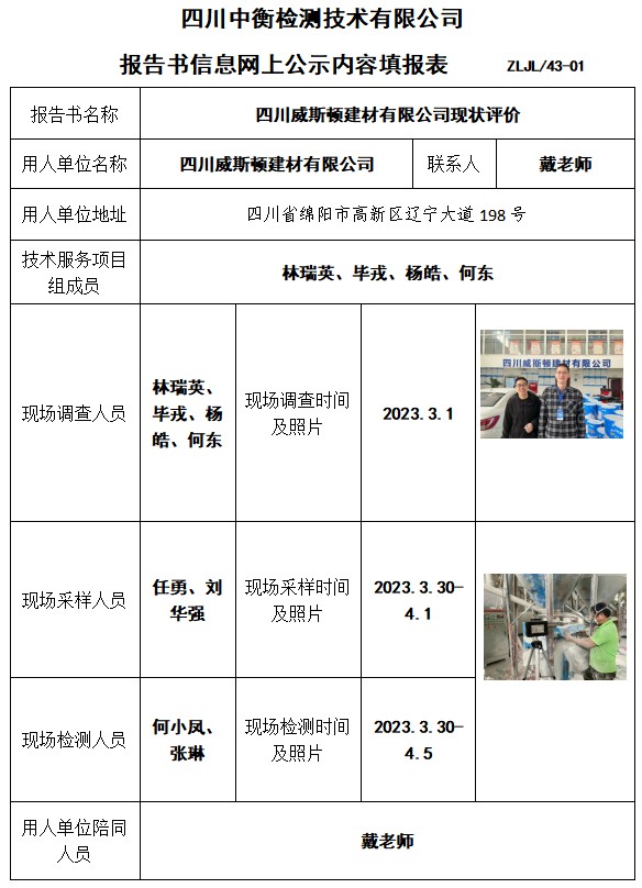 四川威斯頓建材有限公司現(xiàn)狀評(píng)價(jià)