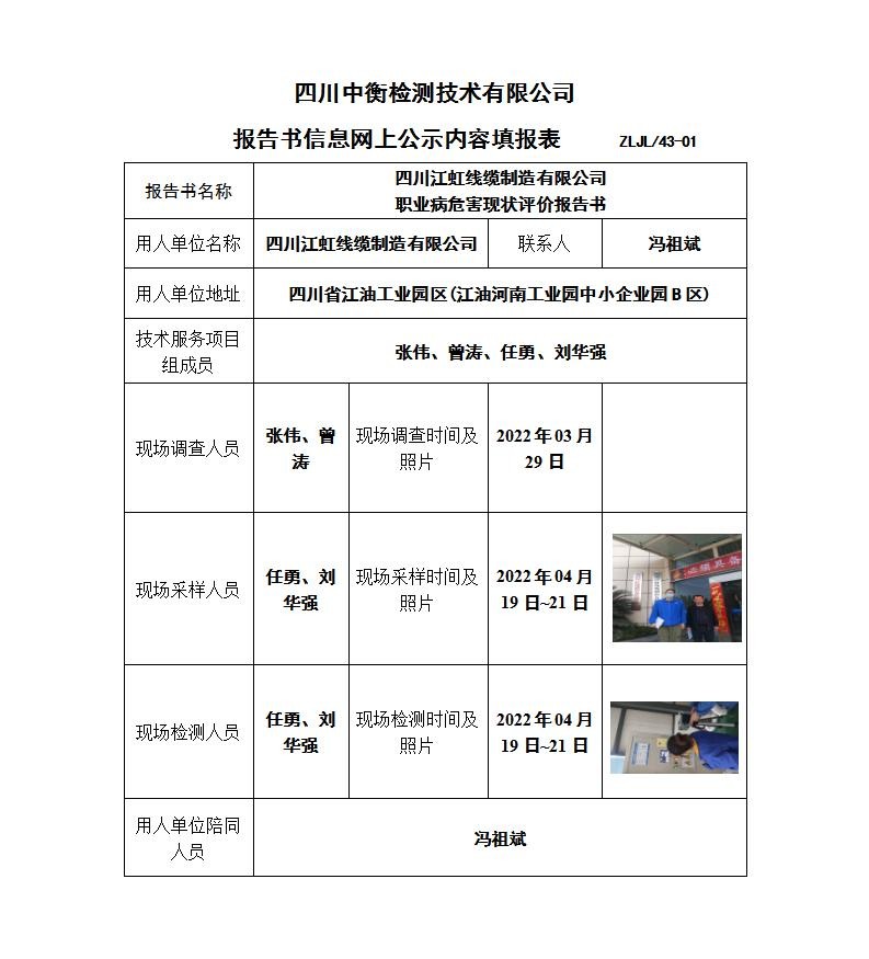 四川江虹線纜制造有限公司職業(yè)病危害現(xiàn)狀評(píng)價(jià)