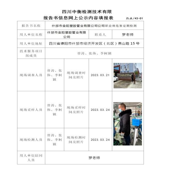 什邡市金陽塑膠管業(yè)有限公司定期檢測