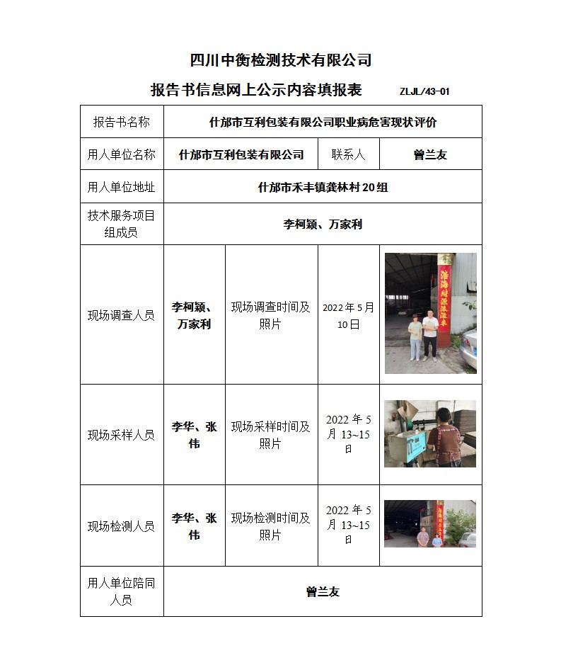 什邡市互利包裝有限公司 職業(yè)病危害現(xiàn)狀評價報告書