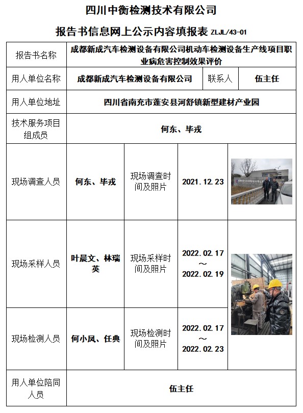 成都新成汽車檢測設(shè)備有限公司機(jī)動(dòng)車檢測設(shè)備生產(chǎn)線項(xiàng)目控制效果評價(jià)