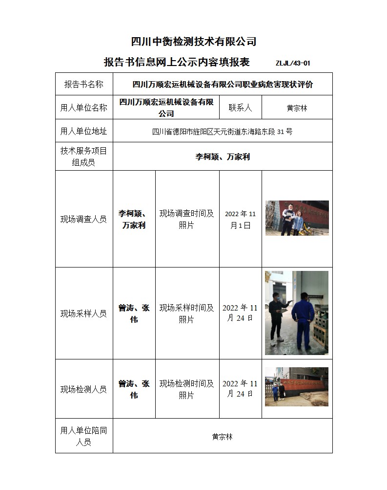 四川萬順宏運(yùn)機(jī)械設(shè)備有限公司 職業(yè)病危害現(xiàn)狀評(píng)價(jià)報(bào)告書