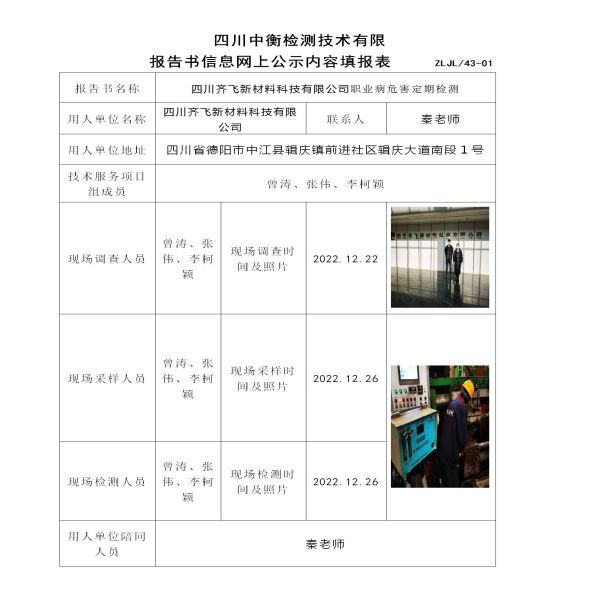 四川齊飛新材料科技有限公司定期檢測