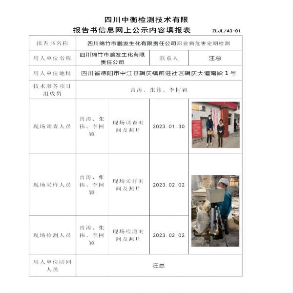 四川綿竹市鵬發(fā)生化有限責(zé)任公司定期檢測(cè)