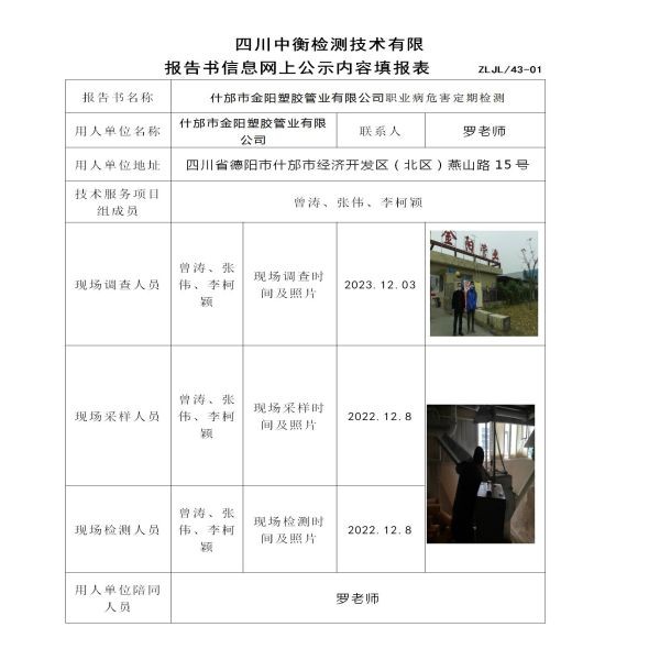 什邡市金陽(yáng)塑膠管業(yè)有限公司定期檢測(cè)