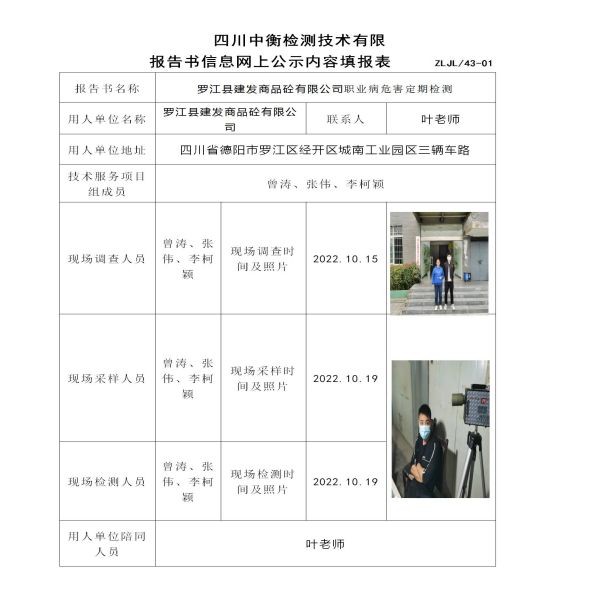羅江縣建發(fā)商品砼有限公司定期檢測