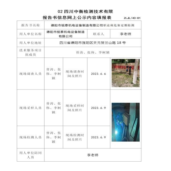 德陽(yáng)市銘泰機(jī)電設(shè)備制造有限公司定期檢測(cè)