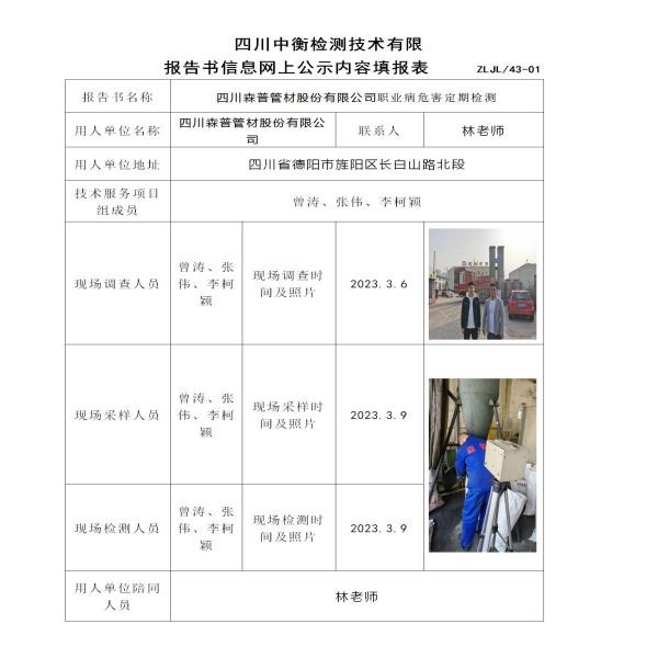 四川森普管材股份有限公司定期檢測