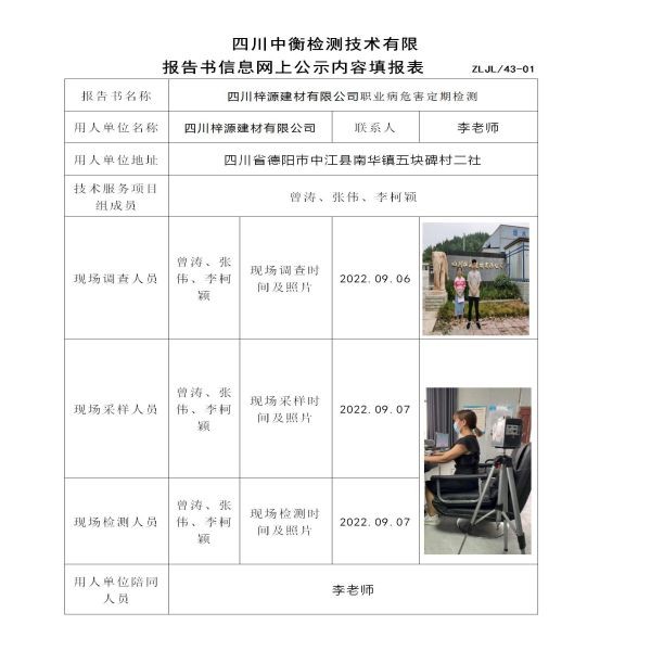 四川梓源建材有限公司定期檢測