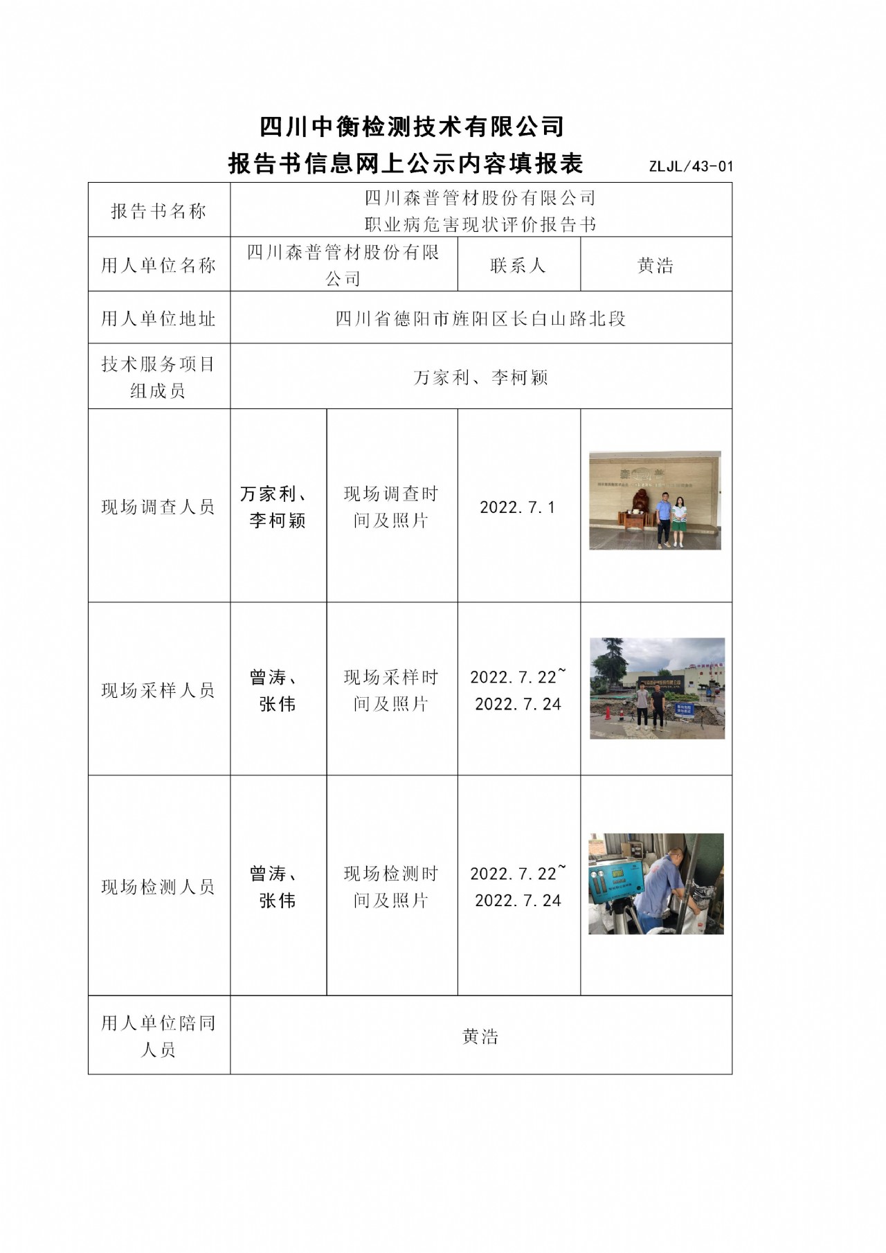 四川森普管材股份有限公司 職業(yè)病危害現(xiàn)狀評價
