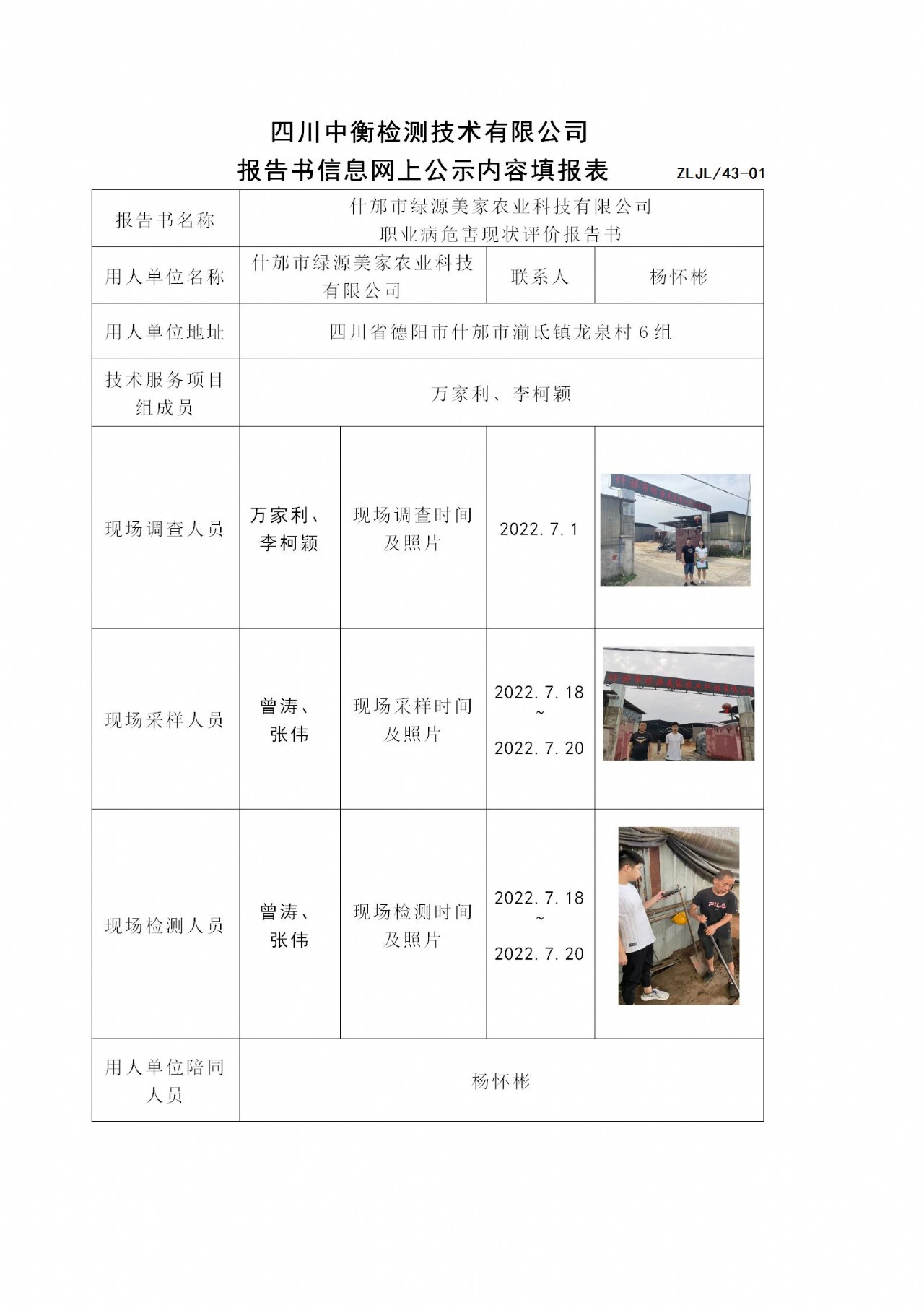什邡市綠源美家農(nóng)業(yè)科技有限公司 職業(yè)病危害現(xiàn)狀評(píng)價(jià)