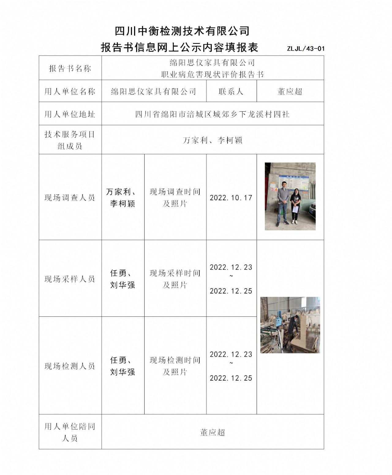綿陽思儀家具有限公司 職業(yè)病危害現(xiàn)狀評價