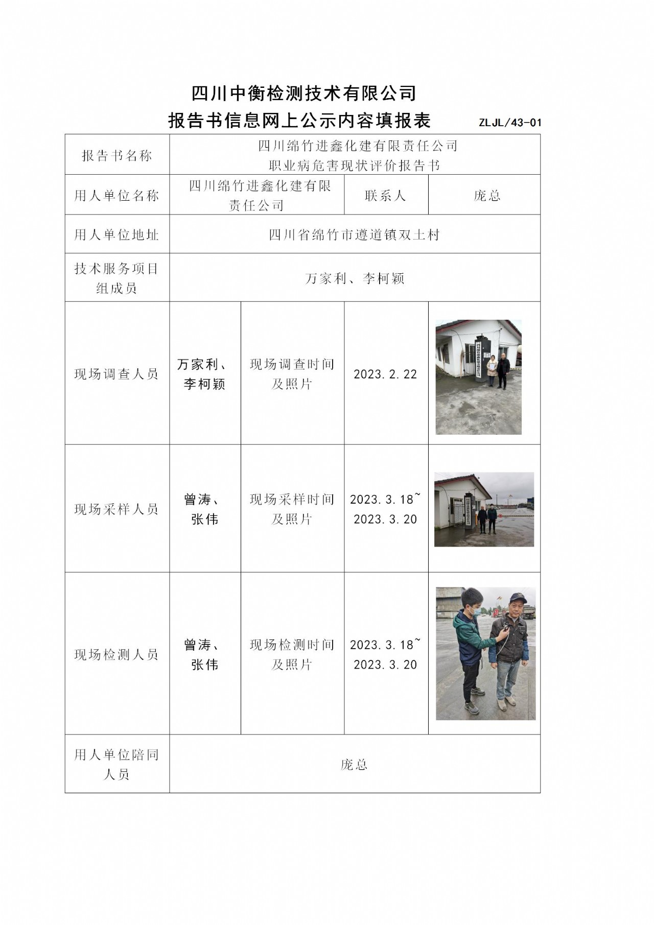 四川綿竹進(jìn)鑫化建有限責(zé)任公司 職業(yè)病危害現(xiàn)狀評(píng)價(jià)報(bào)告書