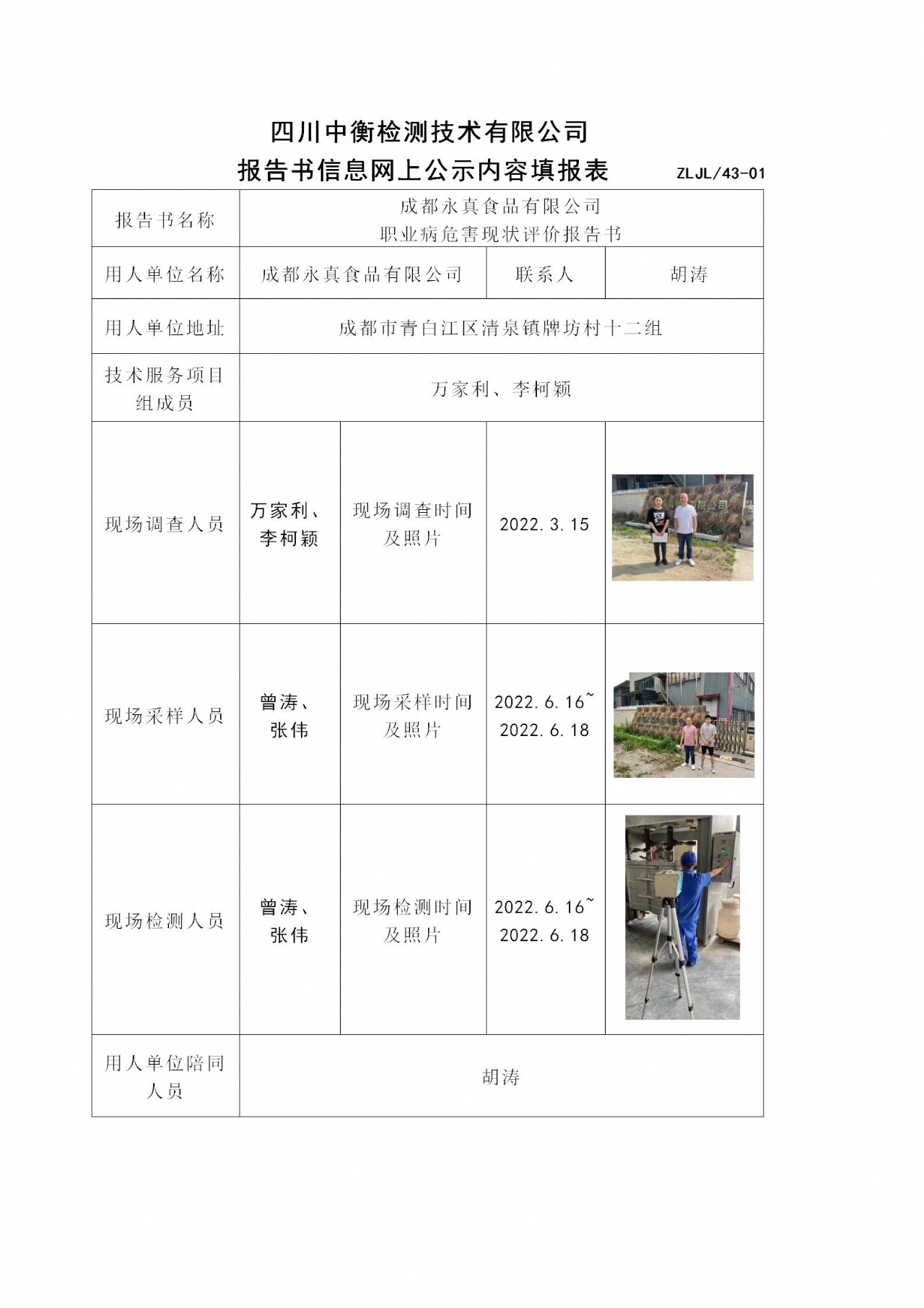 成都永真食品有限公司 職業(yè)病危害現(xiàn)狀評價