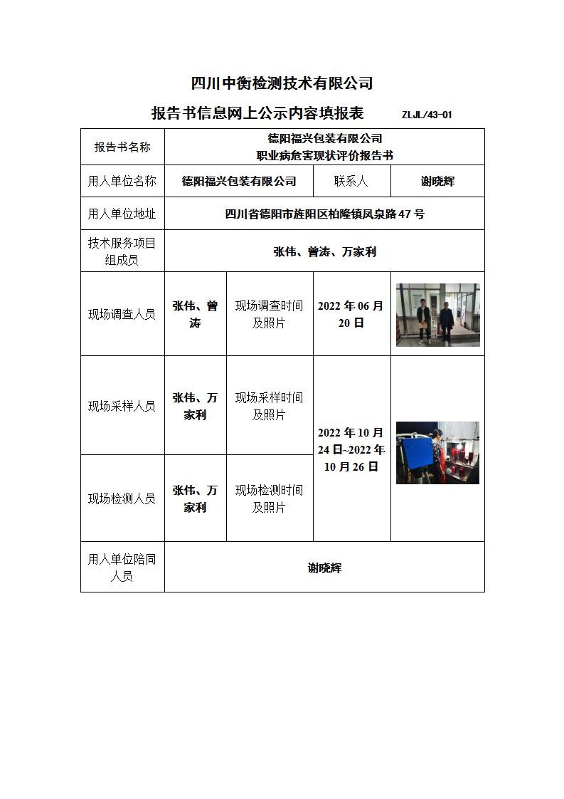 德陽福興包裝有限公司職業(yè)病危害現(xiàn)狀評價