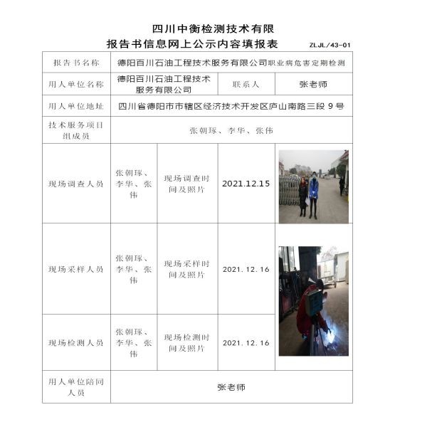 德陽百川石油工程技術服務有限公司定期檢測
