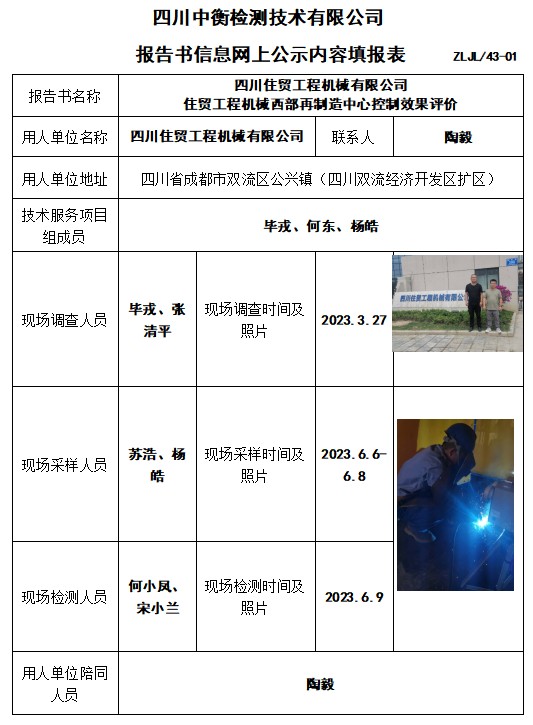 四川住貿(mào)工程機(jī)械有限公司 住貿(mào)工程機(jī)械西部再制造中心控制效果評價(jià)