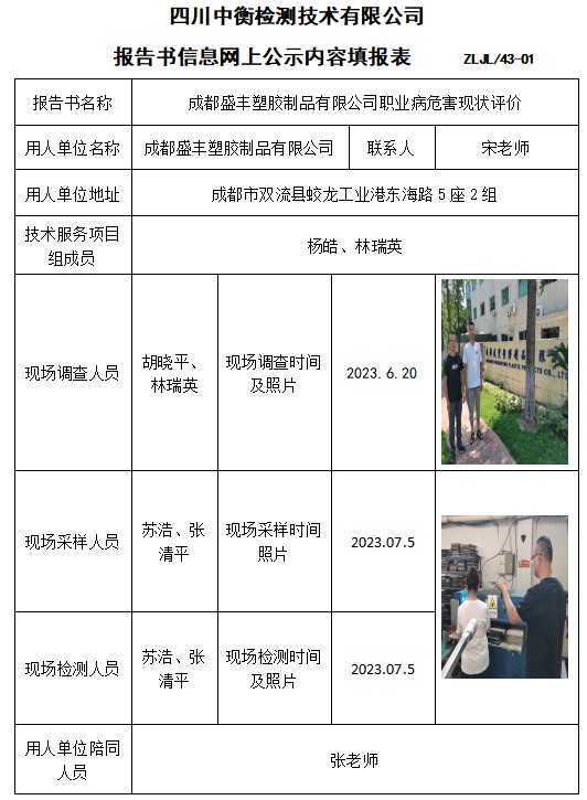 成都盛豐塑膠制品有限公司職業(yè)病危害現(xiàn)狀評(píng)價(jià)