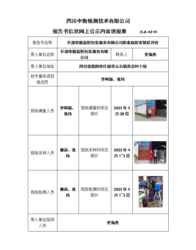 什邡市新益程包裝服務有限公司 職業(yè)病危害現(xiàn)狀評價報告