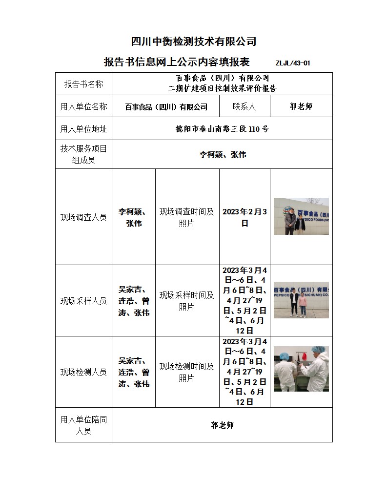 百事食品(四川)有限公司 二期擴建項目 職業(yè)病危害控制效果評價