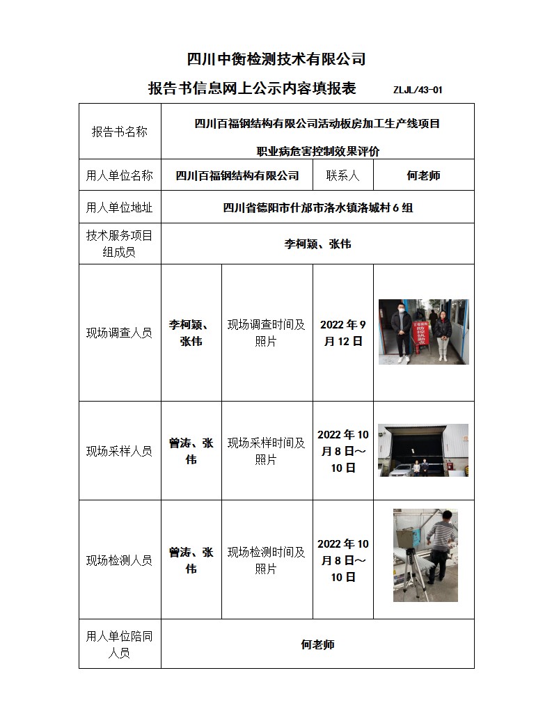 四川百福鋼結(jié)構(gòu)有限公司 活動板房加工生產(chǎn)線項目 職業(yè)病危害控制效果評價