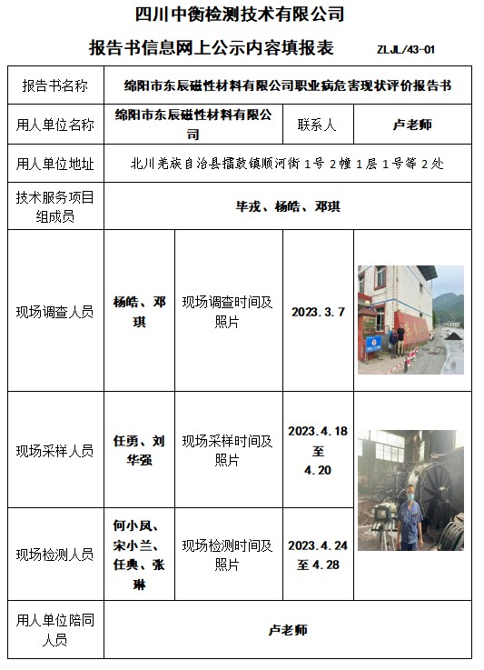 綿陽市東辰磁性材料有限公司職業(yè)病危害現(xiàn)狀評(píng)價(jià)報(bào)告書