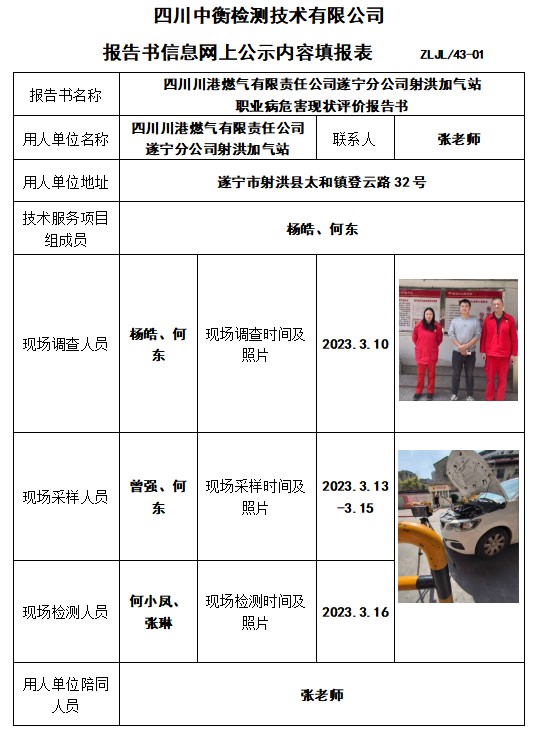 四川川港燃?xì)庥邢挢?zé)任公司遂寧分公司射洪加氣站 職業(yè)病危害現(xiàn)狀評(píng)價(jià)報(bào)告書
