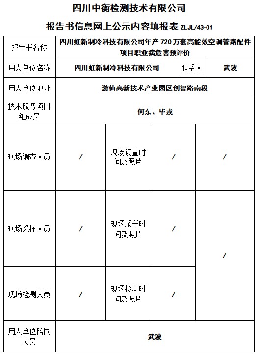 四川虹新制冷科技有限公司年產720萬套高能效空調管路配件項目職業(yè)病危害預評價