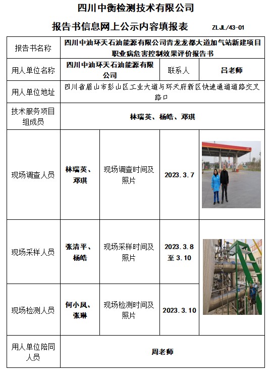 四川中油環(huán)天石油能源有限公司青龍龍都大道加氣站新建項(xiàng)目職業(yè)病危害控制效果評(píng)價(jià)