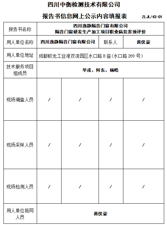 四川逸靜隔音門窗有限公司 隔音門窗研發(fā)生產加工項目職業(yè)病危害預評價