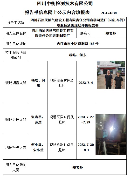 四川石油天然氣建設工程有限責任公司容器制造廠(內江車間)職業(yè)病危害現(xiàn)狀評價報告書
