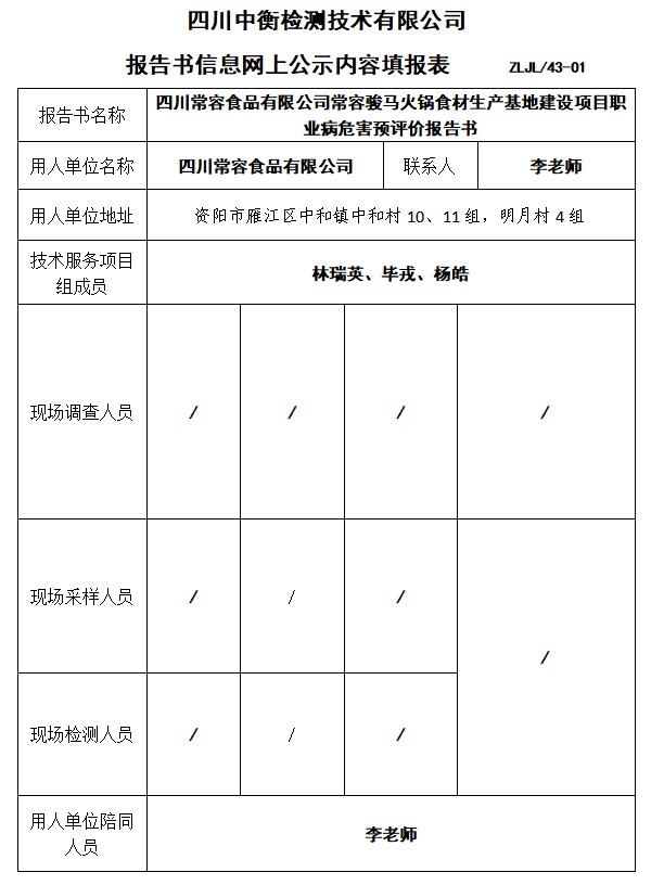 四川常容食品有限公司常容駿馬火鍋食材生產(chǎn)基地建設(shè)項(xiàng)目職業(yè)病危害預(yù)評(píng)價(jià)報(bào)告書(shū)