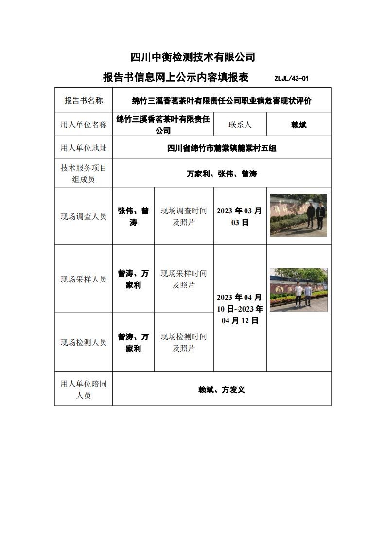 綿竹三溪香茗茶葉有限責(zé)任公司職業(yè)病危害現(xiàn)狀評價