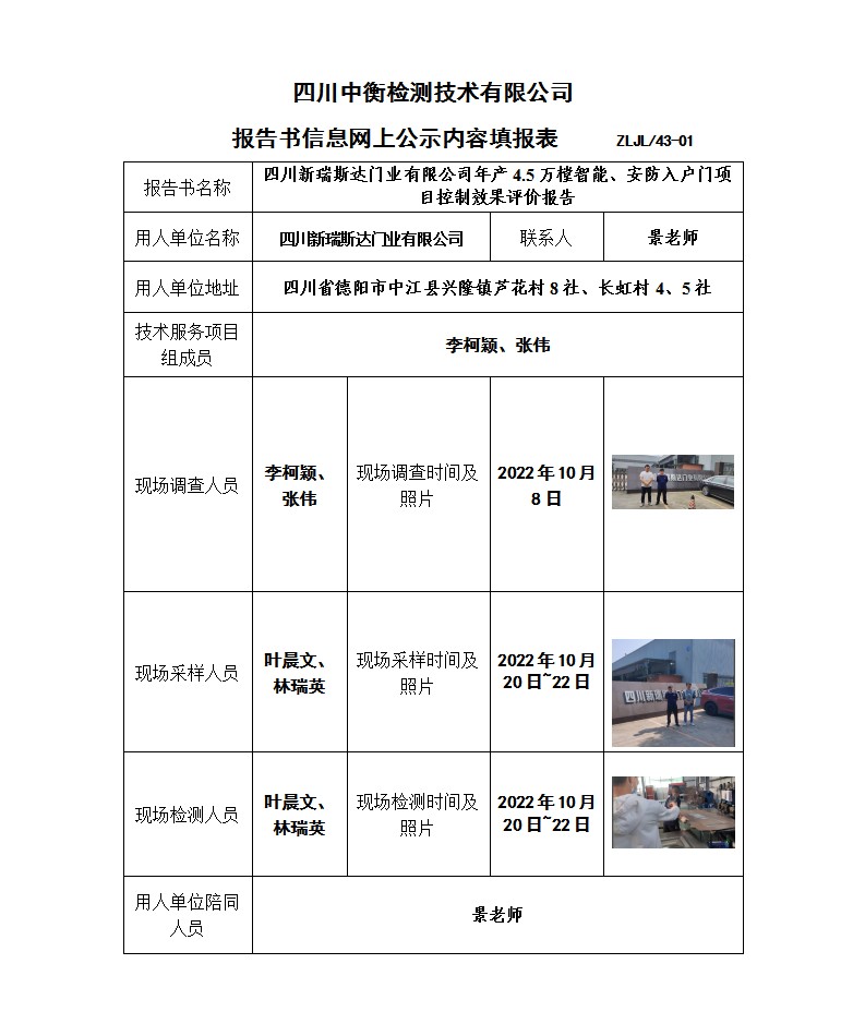 四川新瑞斯達門業(yè)有限公司控制效果評價
