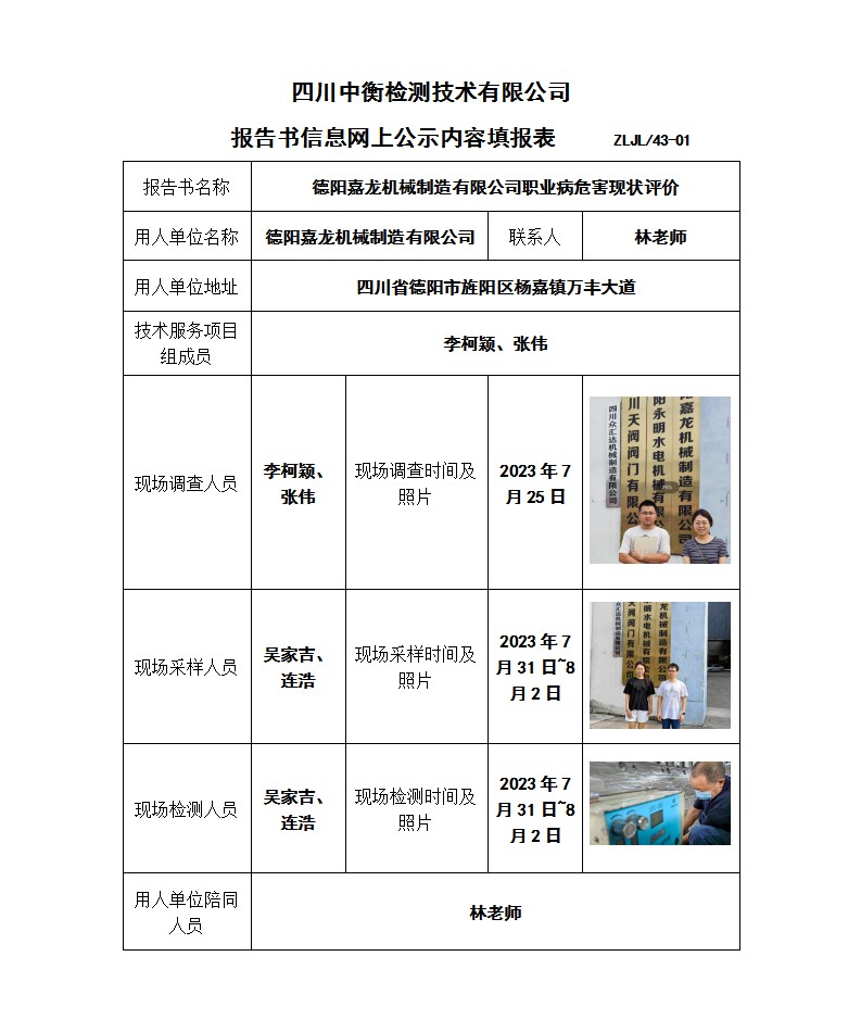 德陽嘉龍機械制造有限公司職業(yè)病危害現(xiàn)狀評價