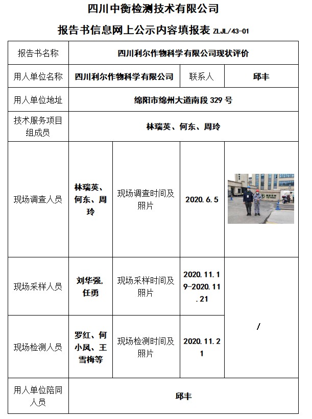四川利爾作物科學(xué)有限公司現(xiàn)狀評(píng)價(jià)