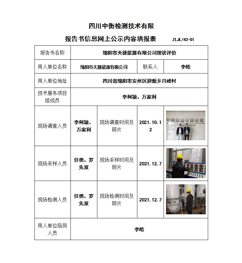綿陽(yáng)市天捷能源有限公司現(xiàn)狀評(píng)價(jià)