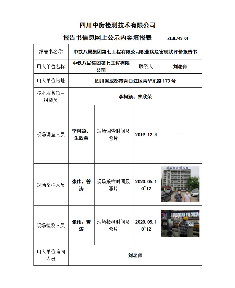 中鐵八局集團(tuán)第七工程有限公司 職業(yè)病危害現(xiàn)狀評(píng)價(jià)報(bào)告書