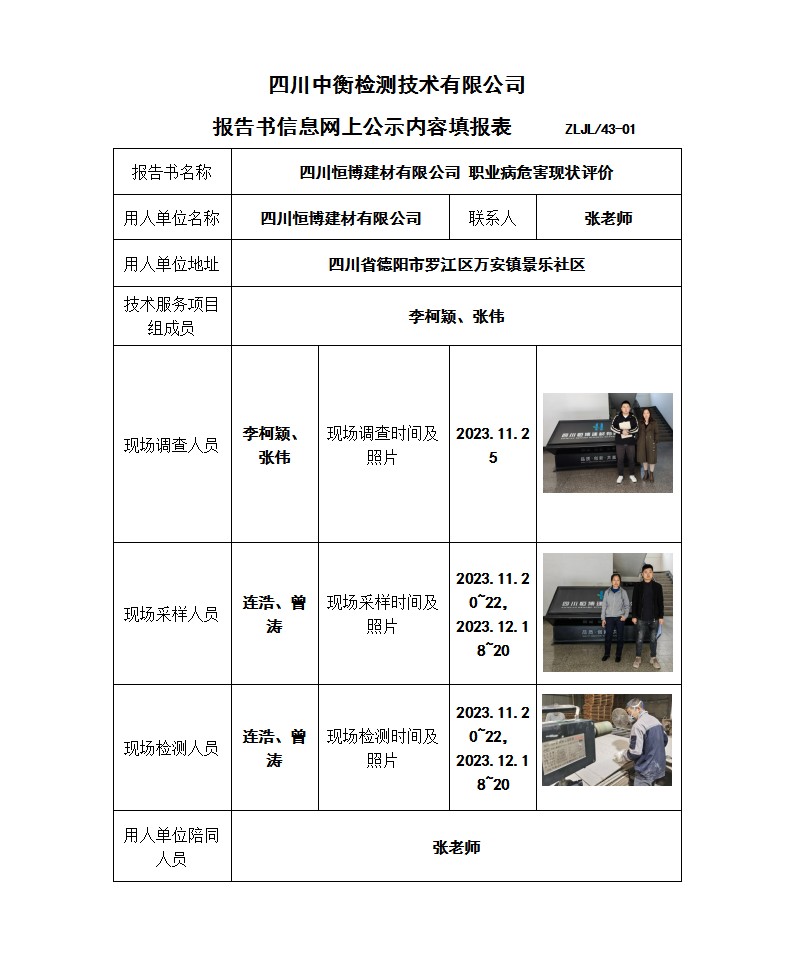 四川恒博建材有限公司 職業(yè)病危害現(xiàn)狀評價