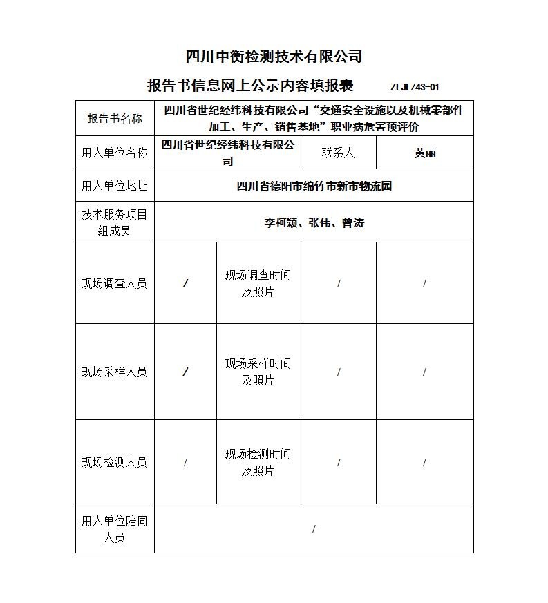 四川省世紀經(jīng)緯科技有限公司“交通安全設施以及機械零部件加工、生產(chǎn)、銷售基地”職業(yè)病危害預評價