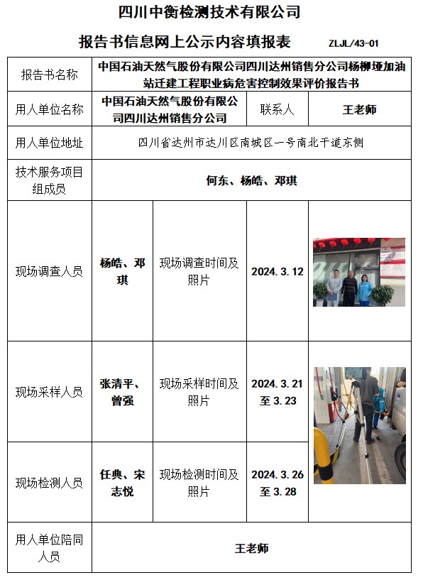 中國石油天然氣股份有限公司四川達(dá)州銷售分公司楊柳埡加油站遷建工程職業(yè)病危害控制效果評(píng)價(jià)報(bào)告書