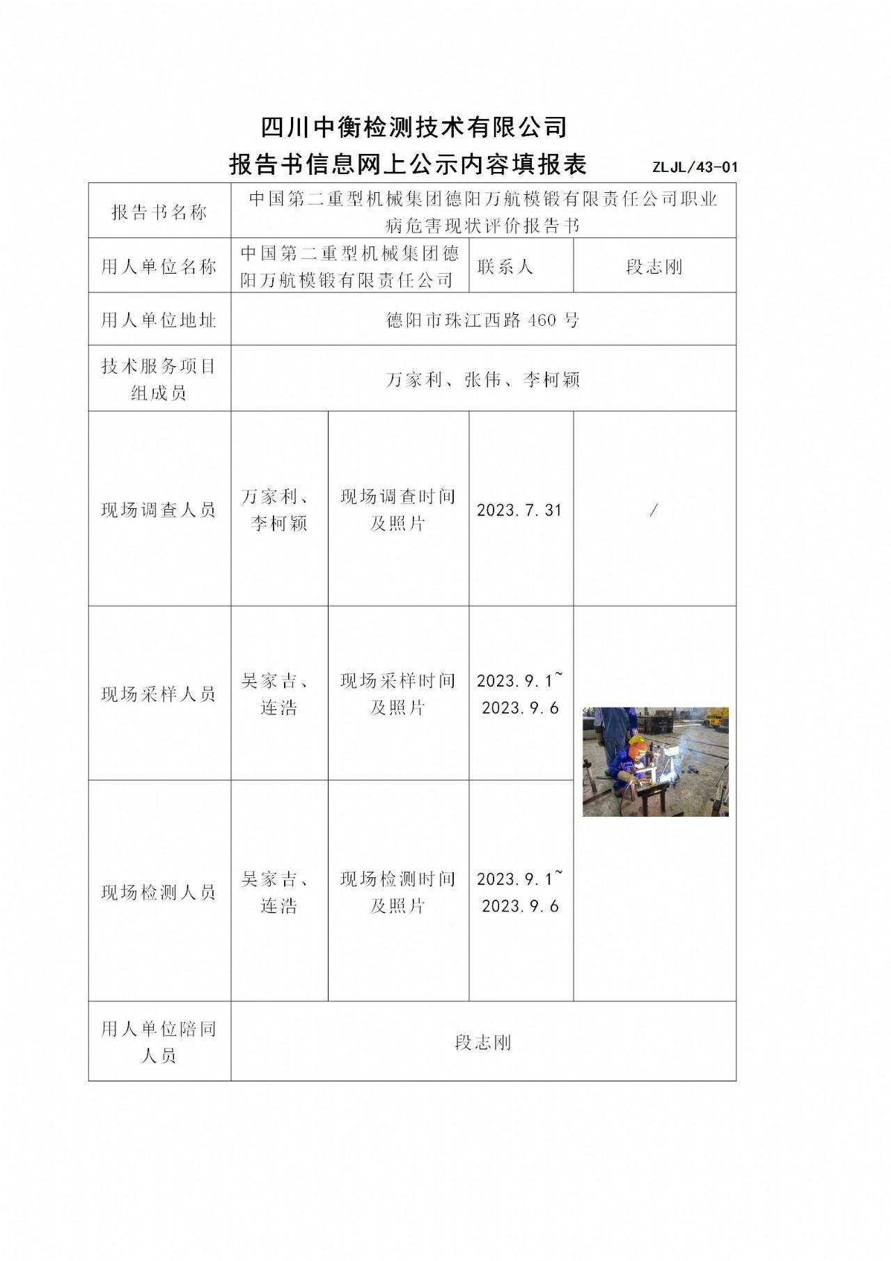 中國第二重型機(jī)械集團(tuán)德陽萬航模鍛有限責(zé)任公司職業(yè)病危害現(xiàn)狀評價報(bào)告