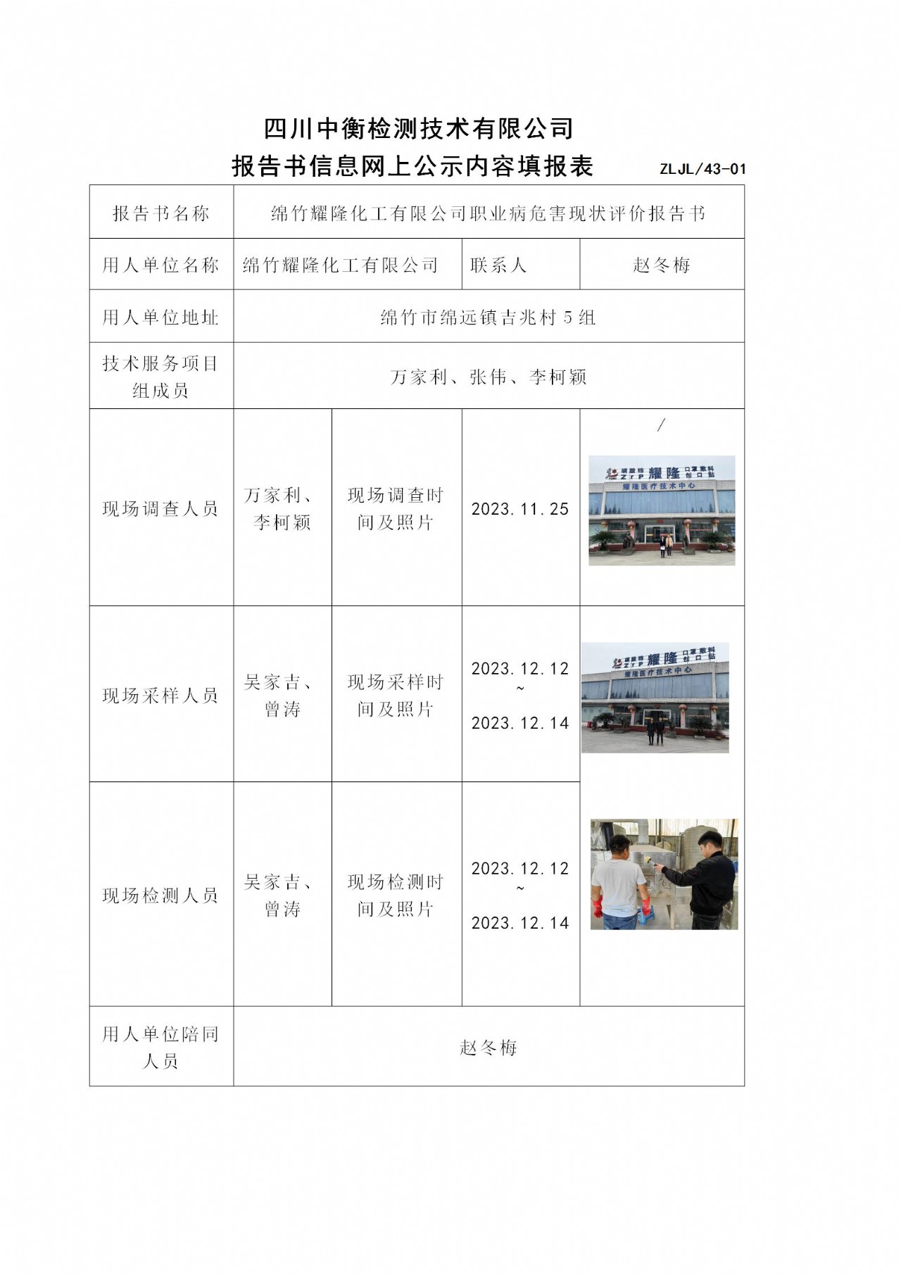 綿竹耀隆化工有限公司職業(yè)病危害現(xiàn)狀評價